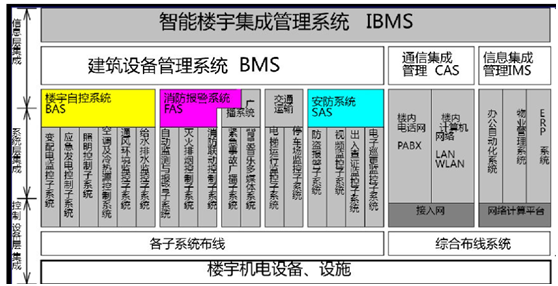 IBMS(Intelligent Building Management System)智能大廈管理系統。采用了國際上先鋒的技術, IBMS把各種子系統集成為一個“有機”的統一系統,其接口界面標準化、規范化,完成各子系統的信息交換和通訊協議轉換,實現五個方面的功能集成:所有子系統信息的集成和綜合管理,對所有子系統的集中監視和控制,全局事件的管理,流程自動化管理。最終實現集中監視控制與綜合管理的功能。
