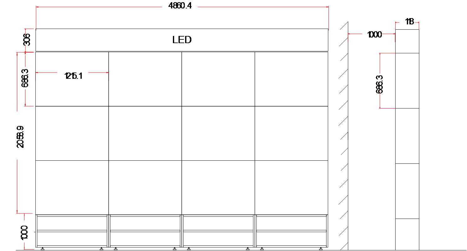 背后維護空間:默認1000mm,實際空間根據用戶現場以及拼墻高度確定