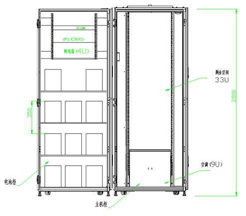 當要求超長后備時間,例如1小時,2小時等,如果主機柜內部空間不夠,此時我們會配套一個外形跟主機柜類似的電池柜,它主要作用是放置后備電池,此電池柜前后側門各方面技術參數參數與主體機柜無異,保持外觀一致性,整潔美觀,只是機柜內部不需要有冷熱封閉功能,不需要有監控門及其天窗狀態等。