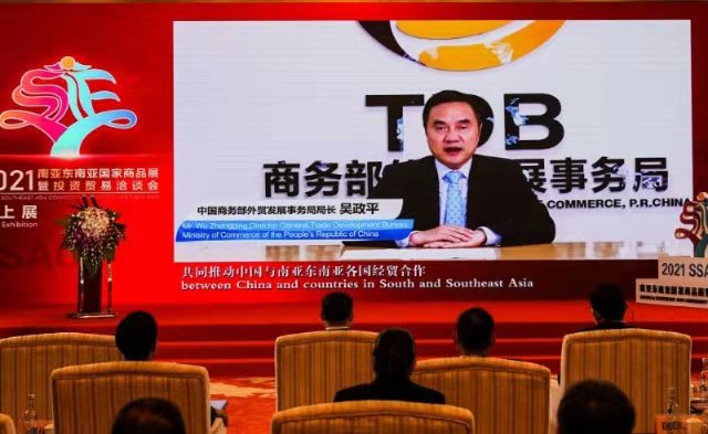 2021南亞?wèn)|南亞國(guó)家商品展暨投資貿(mào)易洽談會(huì)于2021年8月25日開(kāi)幕,副省長(zhǎng)邱江在啟動(dòng)儀式現(xiàn)場(chǎng)致辭并宣布線上展啟動(dòng)。商務(wù)部、外交部相關(guān)部門(mén)負(fù)責(zé)人視頻致辭。越南工貿(mào)部副部長(zhǎng)杜勝海、老撾駐華大使坎葆·恩塔萬(wàn)、南盟工商會(huì)代理秘書(shū)長(zhǎng)佐勒菲卡爾·阿里·巴特視頻致賀。本屆商洽會(huì)充分利用展會(huì)平臺(tái)和商洽會(huì)的新舉措,推動(dòng)實(shí)現(xiàn)互利共贏。